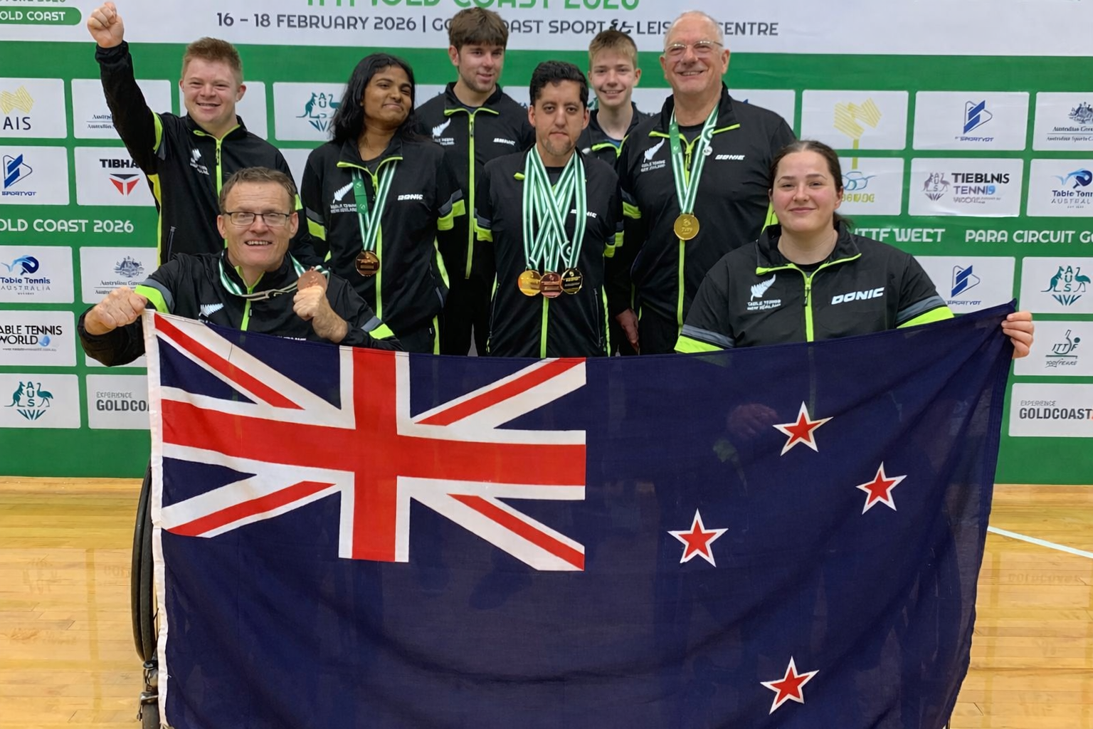 Three CP Society members represented Aotearoa New Zealand at the International Table Tennis Federation’s World Para Future Gold Coast 2026 competition from February 16-18.